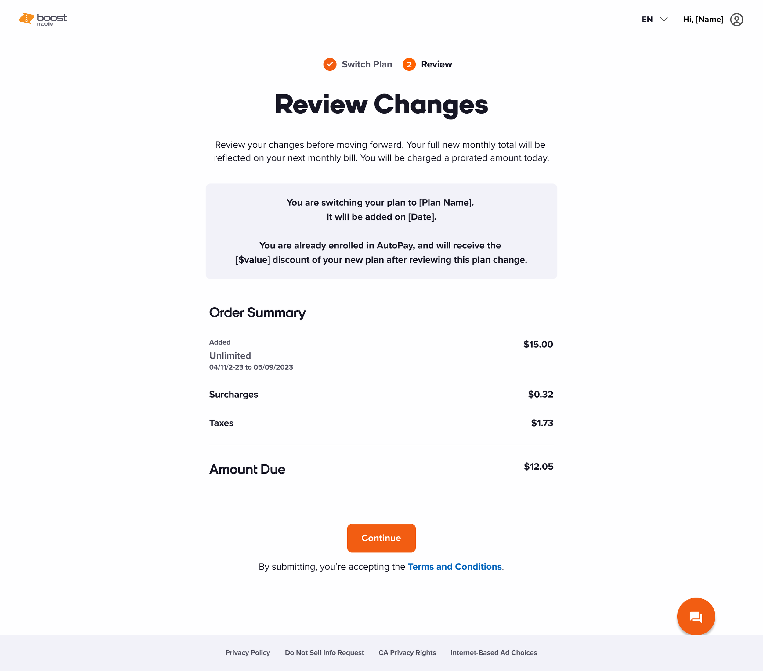 You are switching your plan to [Plan Name].