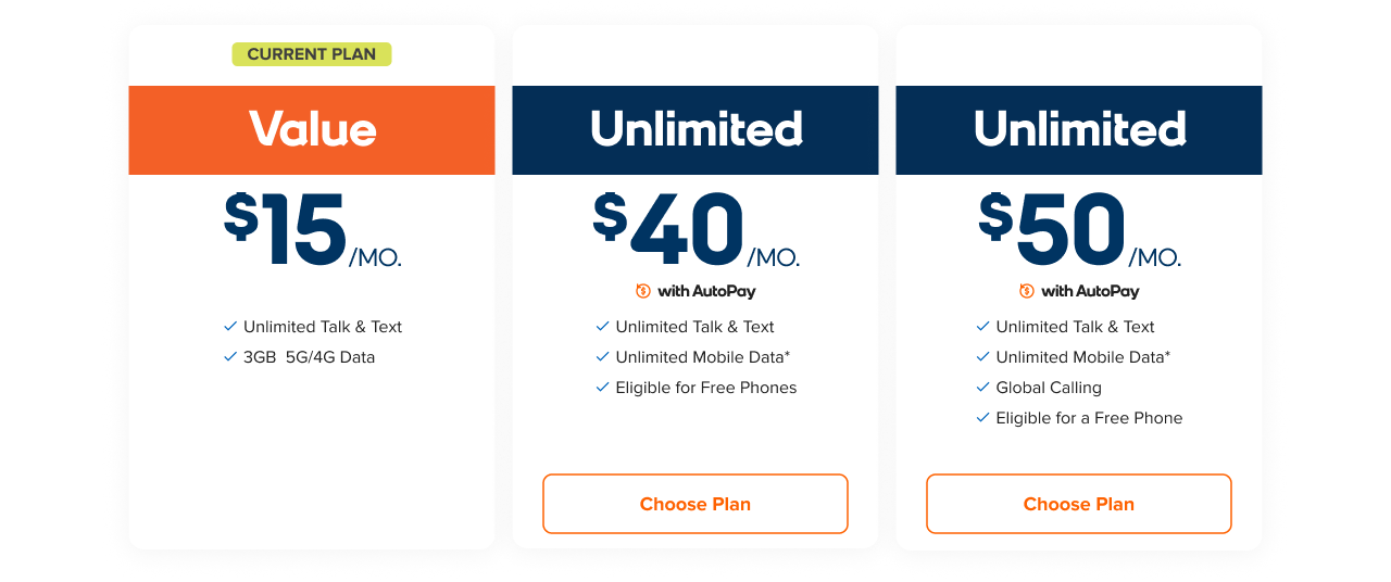 Below is one example when customers are moving from a plan that is not eligible to a plan that is eligible to receive discounts when they have AutoPay on.