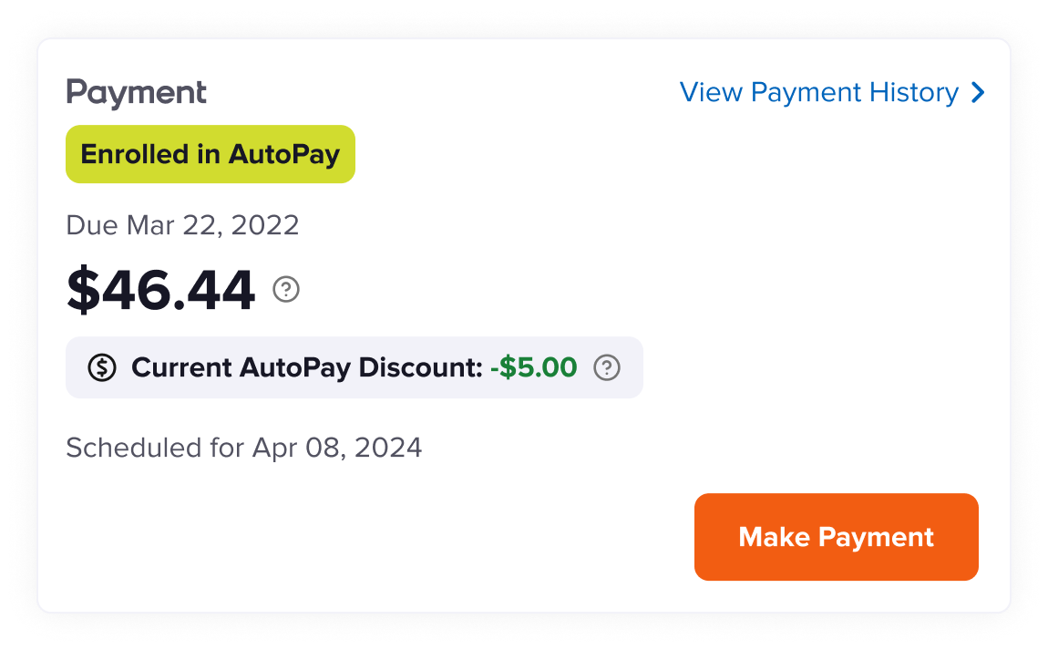 Customers on AutoPay get a tag in their payment block, and a confirmation of how much discount they are receiving.