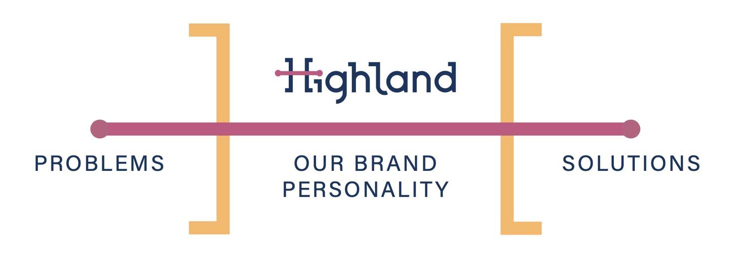 The Highland logo, for instance, represents the human approach, the H rod connects the customer with solutions that Highland can provide.
