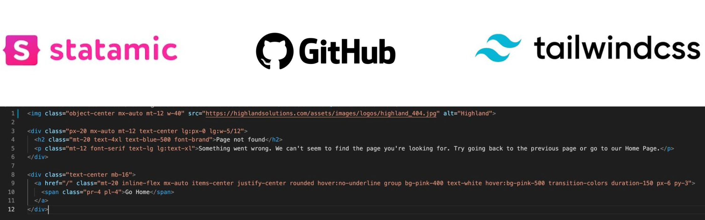 Statamic is the CMS platform used by Highland. With that said, the page was coded using Tailwind CSS and deployed on Github.