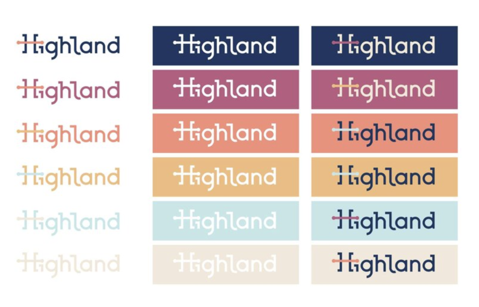Besides the full Highland logo, there’s a friendly and smaller version that greets "Hi" to introduce the strong brand.
